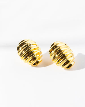 Bold, sculpted, and dripping in shine — these 18K gold-plated earrings bring instant glam to any look. Their modern, ridged design makes them the perfect statement piece for day-to-night style.