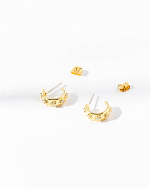 Small in size but big on sparkle — these 18K gold-plated hoops studded with cubic zirconia are pure everyday luxe. Dainty, dazzling, and delightfully versatile, they’re the kind of hoops you’ll never want to take off.