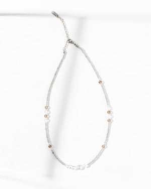 Delicate, dreamy, and effortlessly chic — this beaded necklace adds just the right hint of shimmer to your neckline. Perfect for layering or wearing solo, it’s the kind of piece that makes “less is more” look oh-so-good.