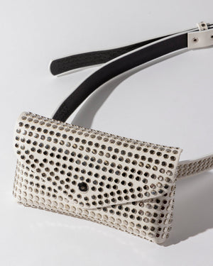 Rock hands-free style with this edgy belt bag, featuring a mini purse decked out in silver studs and a chic flap button closure. Attached to a fully silver-studded belt with a classic buckle, it’s the ultimate blend of cool-girl vibes and everyday convenience.