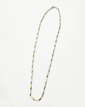 This two-tone chain necklace, crafted in 16K yellow and white gold plating, brings effortless sophistication to any look. Designed with rice links and finished with a sleek round clasp, it’s a versatile piece that shines from day to night.