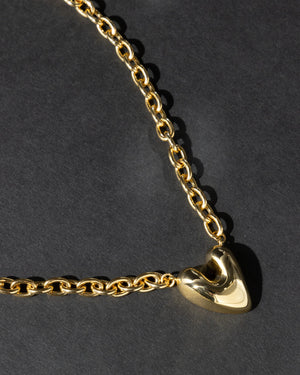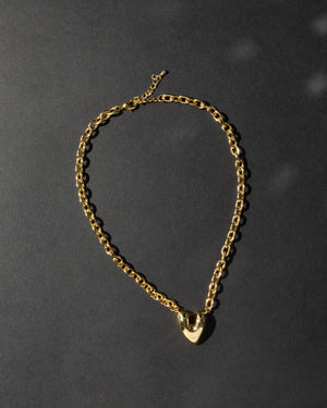 This 18K gold-plated pendant necklace brings modern charm with its bold, molten-style heart and chunky chain that shines with every turn. Sleek, sculptural, and effortlessly chic, it’s the perfect statement piece for elevating any outfit.