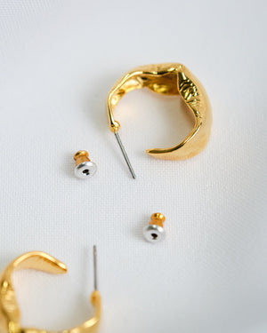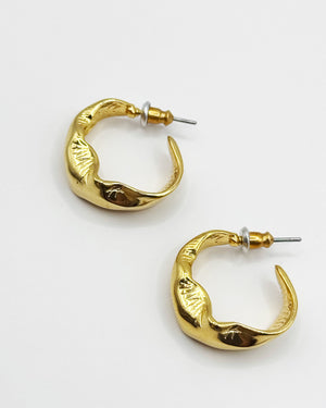 These gold hoops are perfect for throwing on in a pinch. Classic design but irregular chunky shape makes for a great fashion statement!