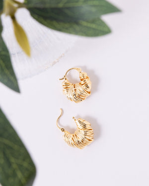 Add a touch of vintage-inspired glamour to your jewelry collection with these stunning chunky hoop earrings, featuring a radiant 18K gold-plated finish. The unique twisted, croissant-style texture catches the light from every angle, making them the perfect statement piece to elevate a simple white tee or your favorite evening dress.