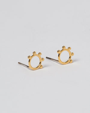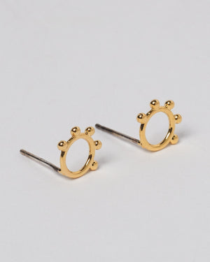 These little huggies feature a pop of color on a gold tone setting. Easily layerable, these cute and boho inspired hoops are great for any style.