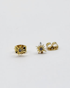 These stud earrings shine like mini constellations, with radiant sparks fanning out from the center. At the core, a dazzling cubic zirconia catches the light and refuses to let go.