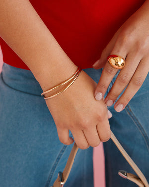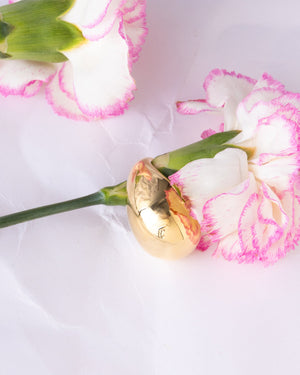This bold ring features a high-shine, sculptural dome finished in radiant 18K gold plating for maximum statement appeal. Edgy, modern, and impossible to miss, it’s the kind of piece that instantly upgrades even the simplest outfit.