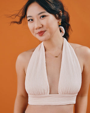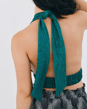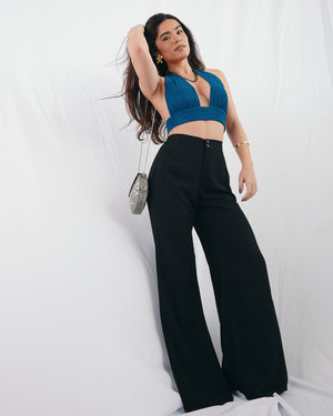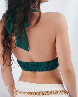 Turn up the heat with this halter crop top that’s equal parts flirty and fabulous! With its textured fabric and plunging neckline, it’s made for sun-soaked days and unforgettable nights.