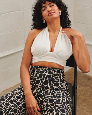 Make a striking statement in this effortlessly chic halter crop. Featuring a versatile front that can be worn twisted or untwisted for two different looks, it wraps gracefully around the neck and ties at the back for a flattering, adjustable fit. The smocked band ensures it hugs you comfortably while accentuating your shape, making it perfect for warm days or nights out. Pair it with high-waisted trousers or a playful skirt to capture the ultimate carefree vibe.