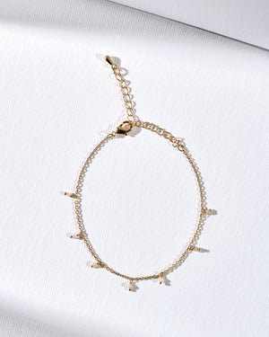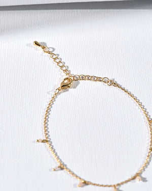 Dainty and sweet, this adorable bracelet is perfect for stacking or wearing solo. With colored gemstone charms throughout, this gold tone beauty is an ideal addition to any ensemble.