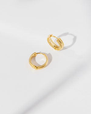Small but mighty, these 18K gold plated hoops bring a bold twist with chic ribbed detailing along the sides. Chunky, shiny, and full of attitude, they’re your new everyday statement makers.