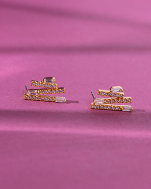 Sleek with a subtle sparkle, these 18K gold-plated earrings feature clean, modern bars accented with shimmering zirconia. Perfect for everyday polish or effortless evening shine, they add just the right touch of glam without trying too hard.