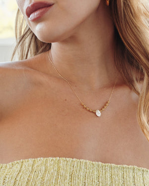 Add a pop of color to your look with this playful pendant necklace, featuring a dainty chain adorned with vibrant glass beads and a dazzling centerpiece. Style it with a deep neck blouse or layer it with other necklaces for a fun, boho-chic vibe!