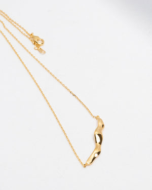 Effortlessly chic with a natural twist, this wavy necklace brings modern minimalism to the forefront. With its flowing, organic form and radiant finish, it adds the perfect glint to any neckline—wear it solo or layer for extra flair.