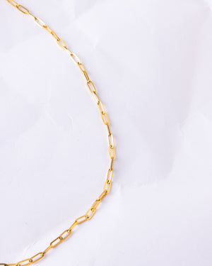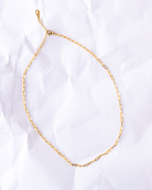 Sleek and effortlessly cool, this 18K gold-plated necklace features delicate paper clip links that shines with understated confidence. Perfect worn solo or layered up, it’s an everyday essential that adds instant polish to any look.