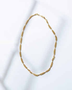 A classic chain necklace with a twist, this gold piece beautifully adorns your décolletage like no other.