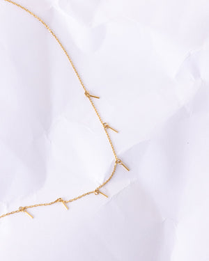 This chain necklace adds subtle sparkle with its delicate links and playful drop accents, finished in radiant 18K gold plating. Perfect for layering or wearing solo, it’s an easy everyday piece that effortlessly elevates any look.