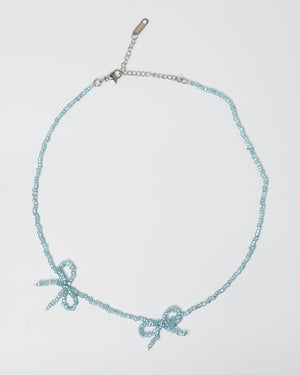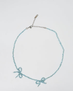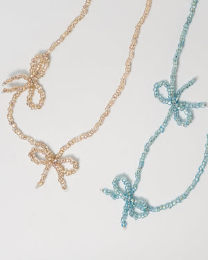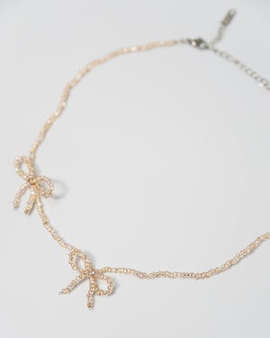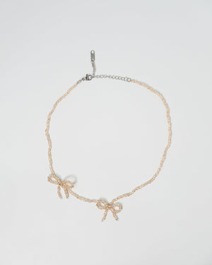 A boho-chic necklace made of delicate glass beads and two adorable beaded coquette bow dangles. It's the perfect blend of sweet and chic, ready to add a charming touch to your everyday outfit!