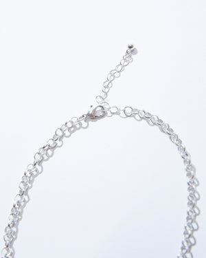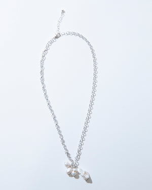This gorgeous silver tone necklace features a cluster of pearls at the center. The asymmetrical design is artisan inspired and unique. If you're looking to add a touch of pearls, this is the perfect go-to.