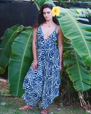 Make a statement in this one-piece jumpsuit featuring a daring plunging V-neck and playful shoulder tie straps. Finished with crossover details, a self-tie belt, and asymmetric flared legs, it’s the perfect mix of bold drama and effortless chic.