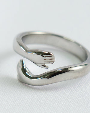 Wrap your finger in a warm embrace with this open-concept ring, where two hands come together in a symbolic, loving gesture. It’s a perfect piece to show off your style and your heart!