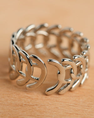 This gorgeous silver tone ring is adjustable and boasts a trendy chain link design. Perfect for any occasion, this incredible ring is a must have.