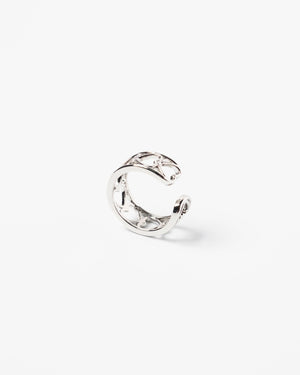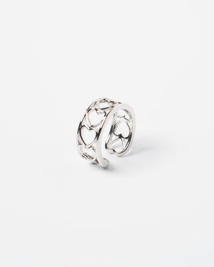 A wide ring that adds a modern twist on romance, featuring an open construct and a sweet hollow hearts motif that wraps all around. It’s the perfect statement piece to add a touch of whimsy and edge to any look!