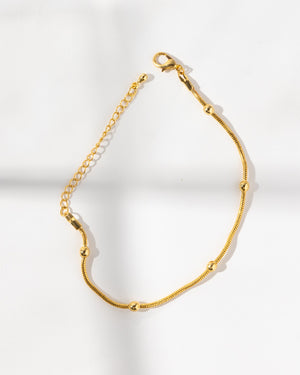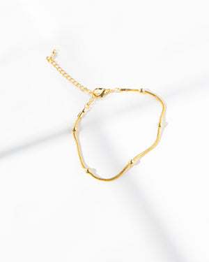 Sleek, shiny, and totally swoon-worthy, this snake chain bracelet is dipped in 16K gold and sprinkled with perfectly spaced gold beads for that effortless luxe look. It’s the golden touch your wrist stack has been waiting for!