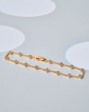 Delicate yet dazzling, this 16K gold-plated bracelet with cubic zirconia brings sparkle to every subtle move. Perfect for when you want to shine without saying a word — because your wrist is sure to do all the talking.