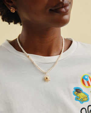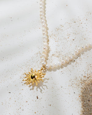 Glow like sunshine with this dreamy 18K gold plated pendant necklace, beautifully paired with lustrous genuine pearls for a soft, radiant finish. Topped with a charming sun motif, it’s the perfect blend of elegance and playful sparkle to brighten every outfit.