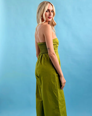 This strapless jumpsuit brings instant drama with its sculpted, ruched bodice and effortlessly flowy wide-leg silhouette. Slip it on and prepare to look like you walked straight out of a chic summer soirée — no accessories required.