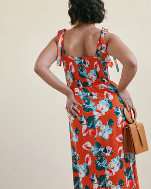This midi dress features a tie strap design. Flowy and light, this versatile dress is easy to throw on in a pinch for a fun, trendy look.