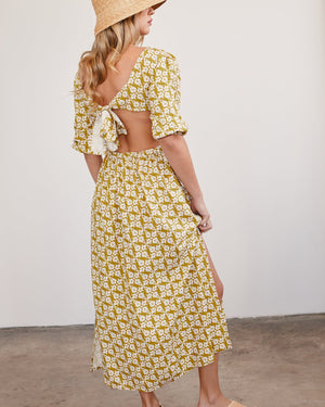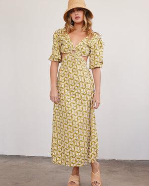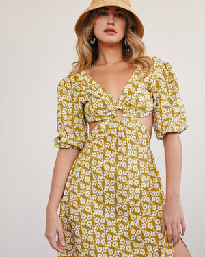 This elbow length sleeved dress features a midi style design. With a keyhole cutout at the waist and a classic v-neck, you will love throwing this on any day of the week.