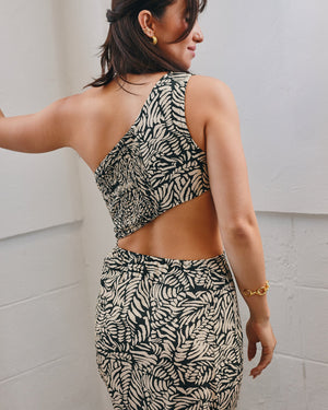 Get ready to stun on your night out in this one-shoulder dress that features an asymmetrical hemline and cut-outs at the waist.