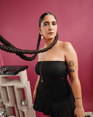 This strapless mini dress brings flirty elegance to the forefront with its sleek silhouette and dramatic pleated hem. Perfect for nights out, it twirls with every step and guarantees all eyes stay on you.