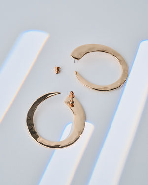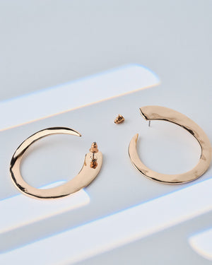 Meet the hammered hoops that look like they were forged by a goddess on her coffee break — bold, shiny, and totally effortless. These 16K gold-plated stunners add instant drama with their sculpted, molten texture.