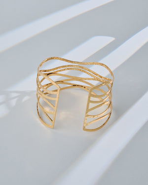 This wavy layered arm cuff is basically wearable sunshine — 16K gold-plated and gleaming from every angle. Slip it on and let your arm do the talking: bold, golden, and absolutely unbothered.