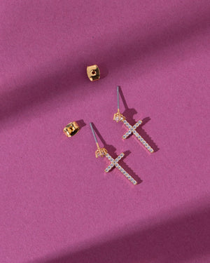 Sleek and sparkling, these 18K gold-plated drop earrings feature delicate cross silhouettes accented with shimmering stones for just the right amount of shine. Lightweight and eye-catching, they’re the perfect little statement to elevate everything from everyday denim to evening looks.