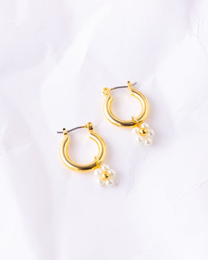 These 18K gold-plated hoop earrings get a classy twist with glossy acrylic pearls that sway sweetly with every move. Chic yet charming, they’re the perfect little statement for dressing up everyday looks or adding romance to an evening out.