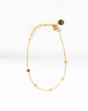 Delicate yet dazzling, this chain bracelet crafted from 18K gold-plated stainless steel features tiny floral motifs for a touch of elegance. Perfect for stacking or wearing solo, it’s just the everyday favorite you needed!