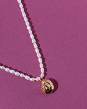This elegant pearl necklace is elevated with radiant 18K gold plating and finished with a gleaming shell-inspired pendant for a touch of seaside glamour. Classic meets modern, making it perfect for dressing up a simple look or adding polish to your everyday style.