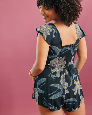 This sexy one-piece jumpsuit brings all the charm with its flirty front tie and stylish cutout that instantly elevates your look. Finished with breezy sleeves and a comfy smocked back, it’s the effortless outfit you’ll reach for when you want to feel cute and confident.
