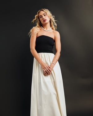 This strapless maxi dress serves effortless drama with its sleek, fitted bodice and flowy, cloud-like skirt that swishes with every step. Perfect for sunny strolls or weekend escapes, it’s the kind of throw-on style that instantly makes you feel like the main character.