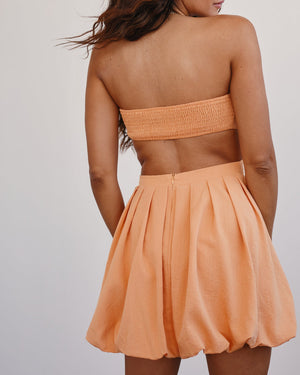 This adorable mini dress features a sleeveless appeal with cutouts at either side of the waist. Flowy and fluttery on the bottom, this cute mini is a must
