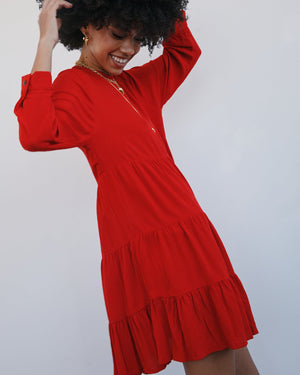 This vibrant mini dress brings instant joy with its tiered silhouette and twirl-worthy hem. Finished with a charming keyhole back, it’s the perfect pick for days when you want effortless style with a flirty kick.