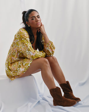 Steal hearts in this mini dress with a plunging sweetheart neckline and dreamy balloon sleeves that bring all the romance. Add statement earrings and block heels for a look that floats from dinner dates to dance floors with ease!