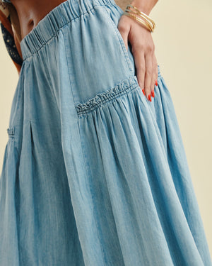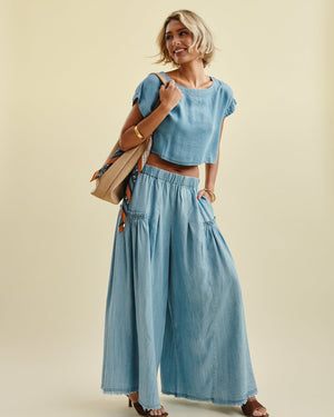 Float through your day in these dreamy flared pants, designed with a relaxed, wide-leg silhouette and soft, lightweight denim feel. The boho-inspired waistband and flowy movement make them the perfect statement piece for carefree days and sunset strolls.