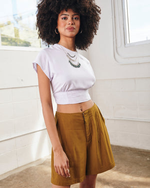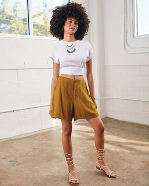 Keep it effortlessly chic with these tailored shorts, designed with a clean silhouette and subtle pleat details. Perfect for dressing up or down, they add a polished touch to any warm-weather look.