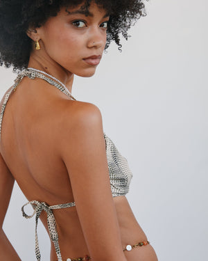 This flirty crop top brings effortless charm with its bra-style front and playful twist detail that instantly elevates any look. The open back with tie straps adds a breezy, beach-ready vibe — perfect for turning heads from sunny days to sultry nights.