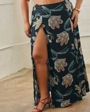 This breezy maxi skirt brings effortless drama with its flowy silhouette and daring double slits that move beautifully with every step. Soft, lightweight fabric and a relaxed fit make it the perfect mix of comfort and flirt appeal for sunny days or sultry nights.